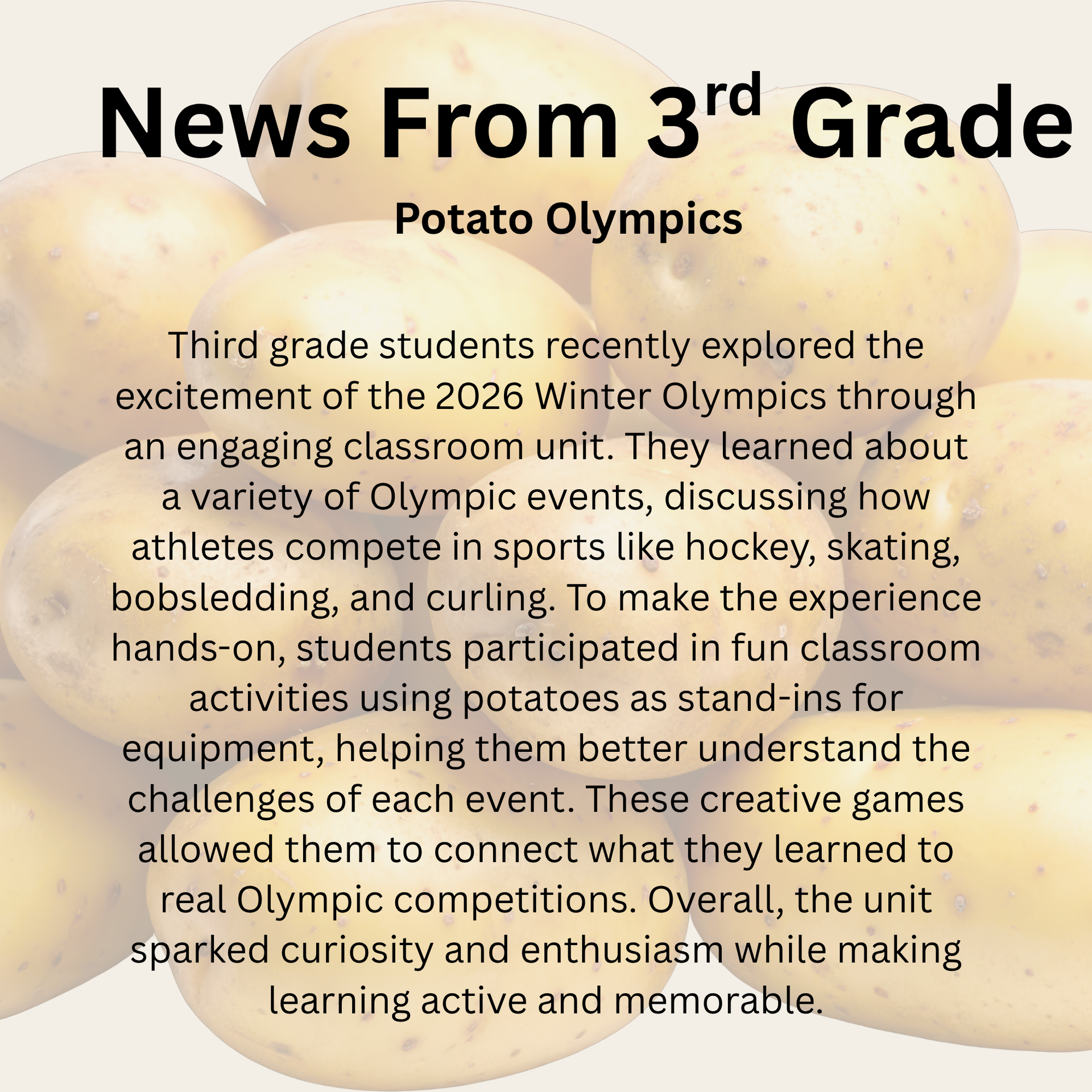 I would like to wish each family a great finish to the school year and a fantastic summer break! We appreciate your continued support!