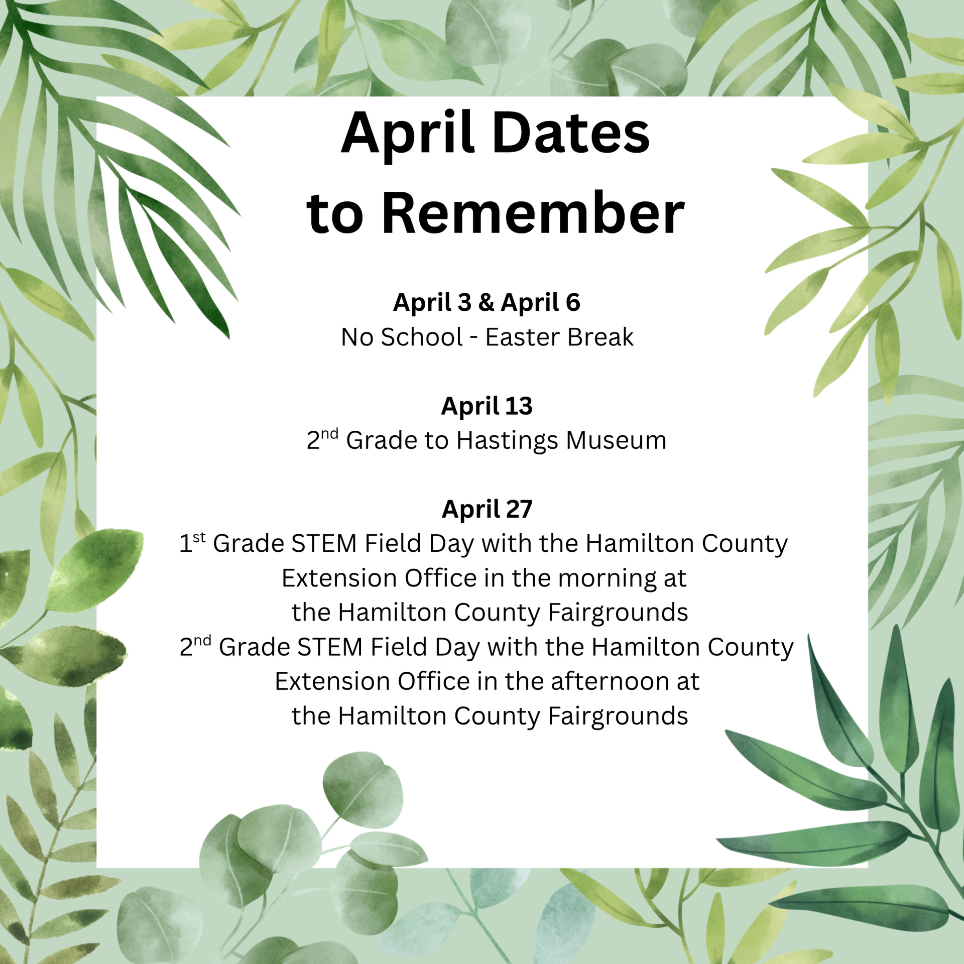 As you receive this newsletter, we will have already completed two weeks of the 4th quarter. Third quarter report cards were mailed on March 13. Please contact your child’s teacher if you have questions or concerns.